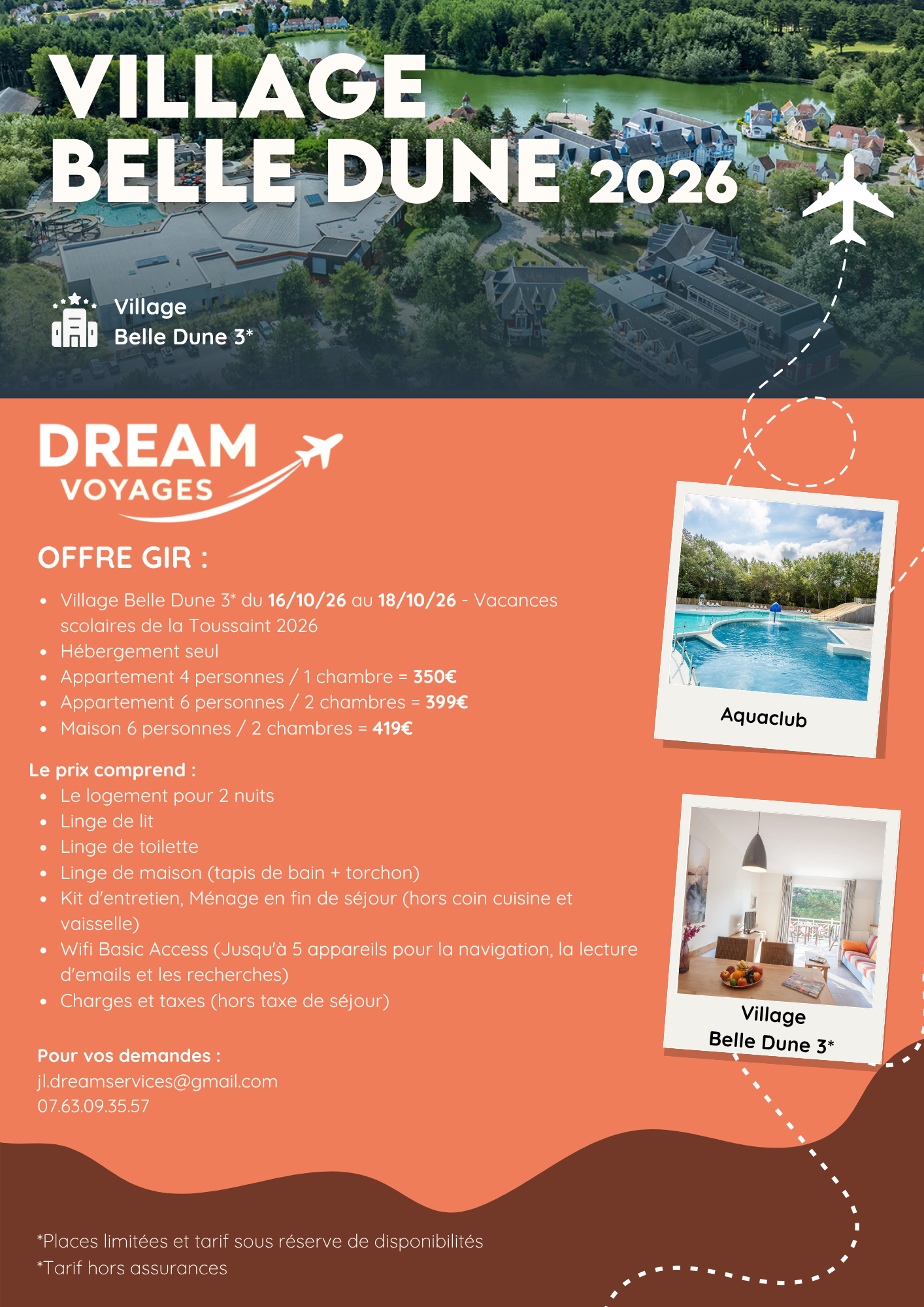 Et si vous vous offriez une parenthèse nature et détente pour les vacances de la Toussaint 2026 ? Découvrez le Village Belle Dune 3*, un cadre exceptionnel entre lac, dunes et espaces verts, idéal pour toute la famille.
